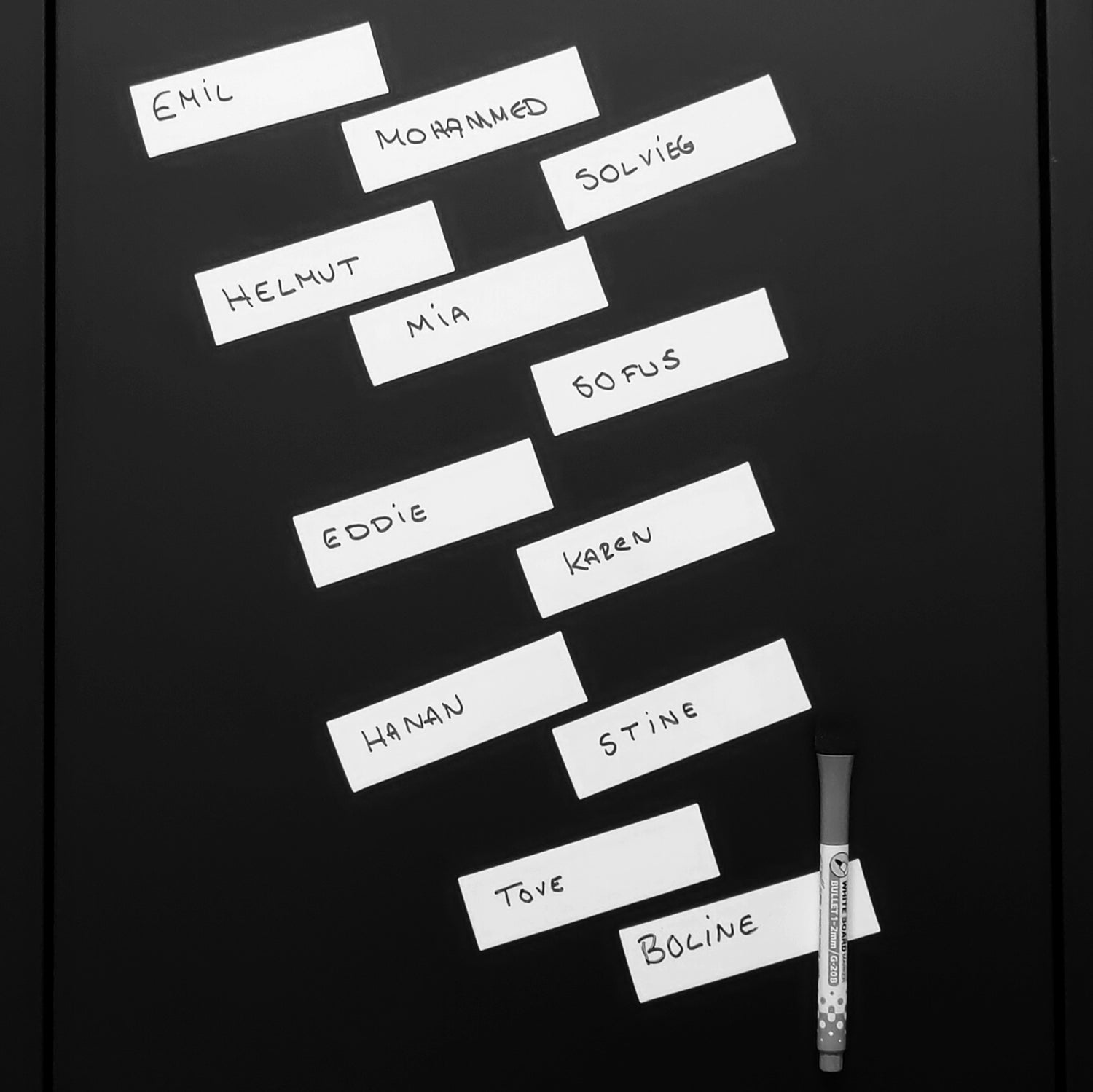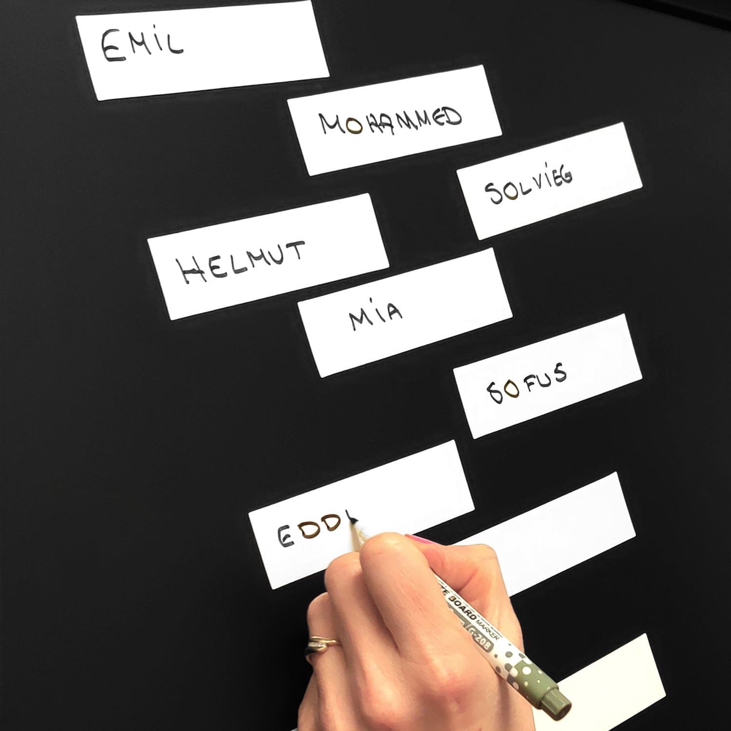 Du kan skrive på whiteboard-folien med en whiteboard-marker og viske det ud igen. De fleksible MagNotes sidder fast på alle magnetiske overflader – dog ikke glastavler.