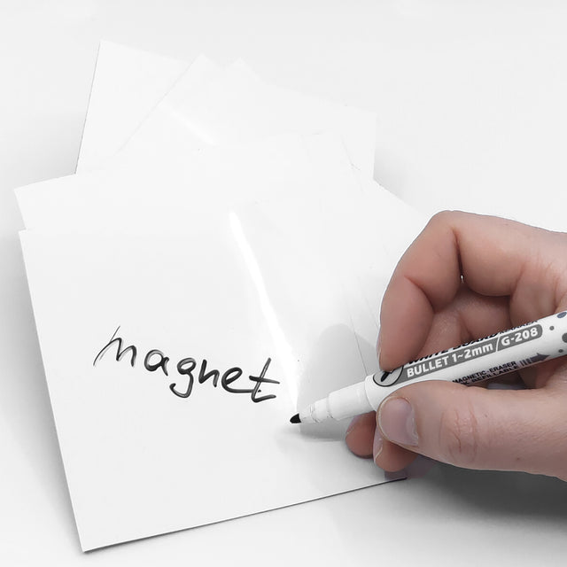 Hver MagNote måler 10 x 10 cm og har en fleksibel magnetisk bagside, der gør den nem at sætte op og flytte. Forsiden er lavet af whiteboard-folie, så du kan skrive og slette lige så mange gange, du vil.